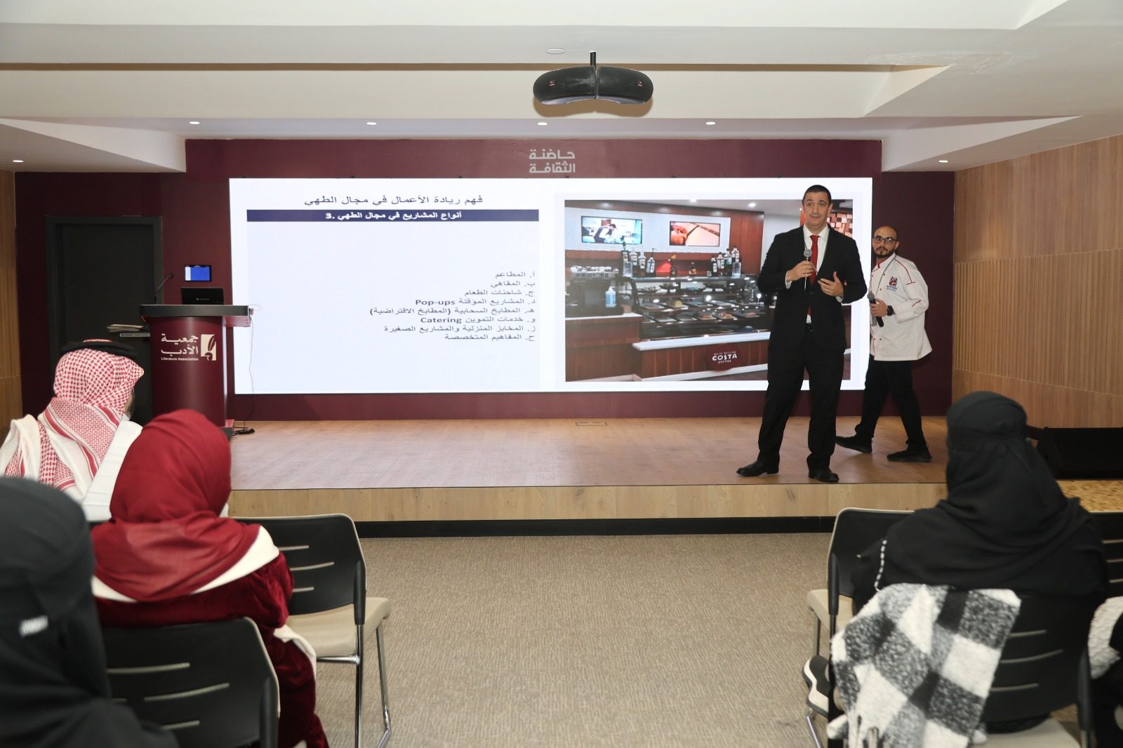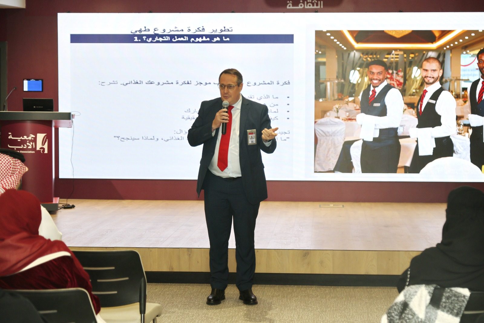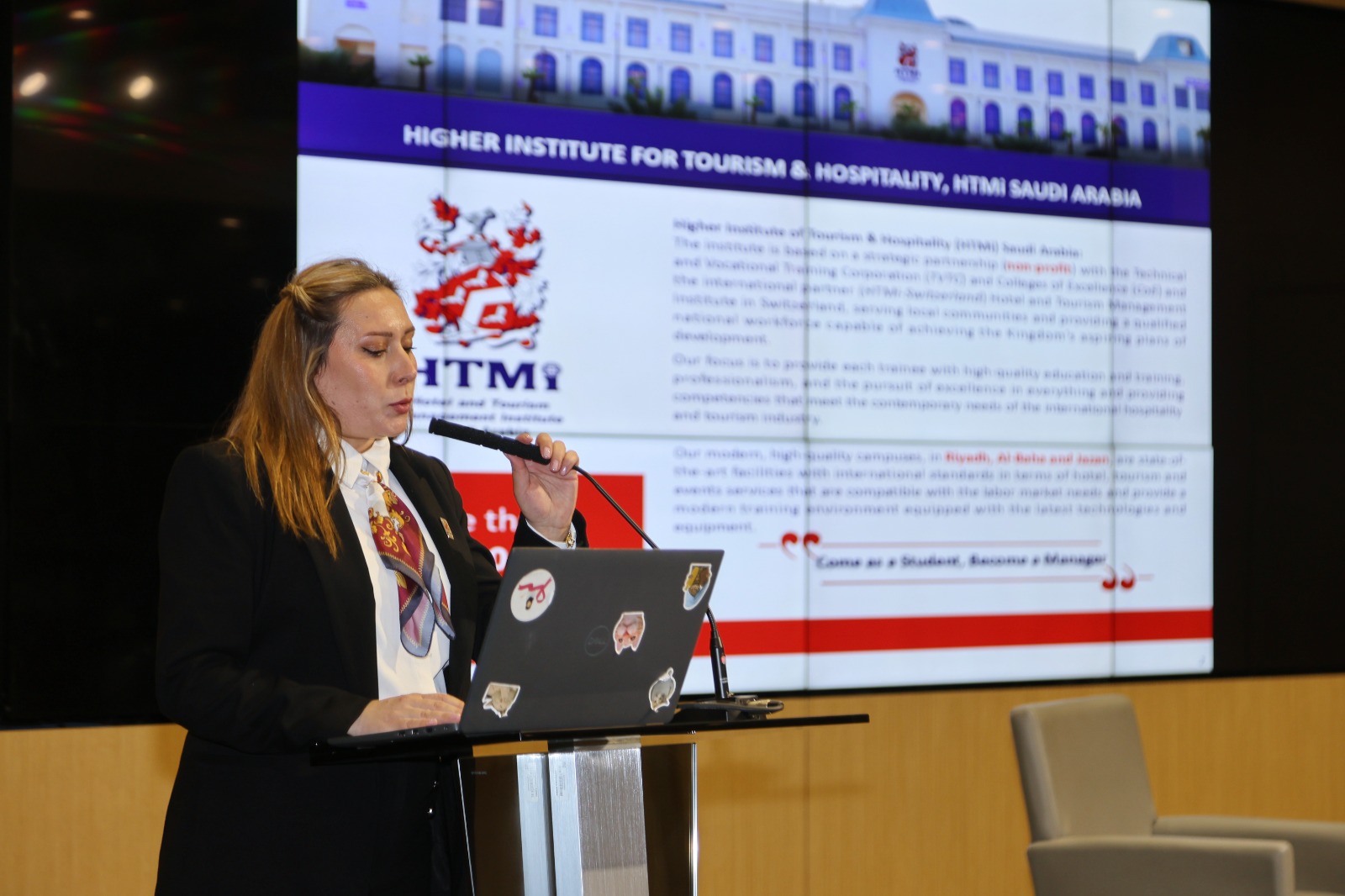 HTMi Saudi Arabia hosted a lecture presented by Marriott International, focusing on the core values that ensure companies' leadership in the hospitality sector, how to enhance career paths in hospitality, and the importance of continuous learning and lifelong development.