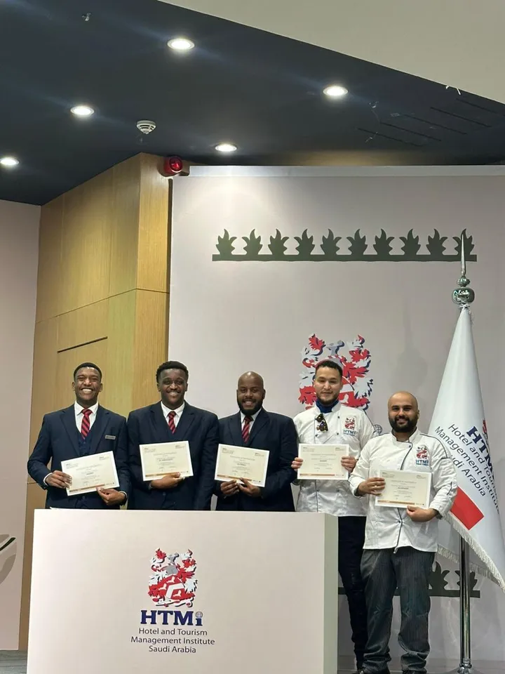 A field visit by Culinary Arts Management Diploma trainees from HTMi Riyadh to InterContinental Durrat Al Riyadh Resort & Spa, their employing company, to meet direct supervisors and explore on-site training locations.